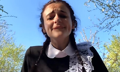 Cute girl wearing Japanese Schoolgirl uniform dry humping him till he jizzes in his underwear grinding doggystyle