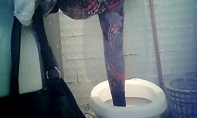 Sweet and juicy round pale skin booty filmed in the toilet apartment