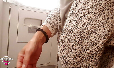 Brunette curvaceous amateur woman in the toiletroom shows her huge culo
