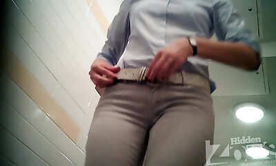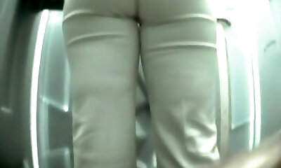 White amateur nymph in blue jeans exposed on cam in the toilet