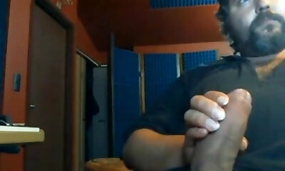 Huge wooly bear jerking a big cock in the chat