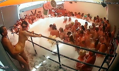 Morgan Moon and her buddy rail two dicks in a restaurant