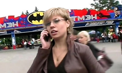 Wife in glasses Olga Cabaeva getting pounded on the floor at a club