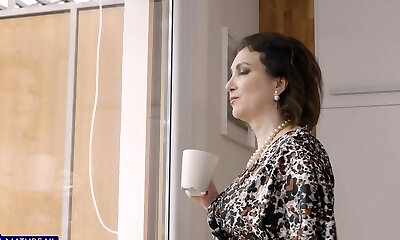 Big boobed soccer mom is playing her mature pussy