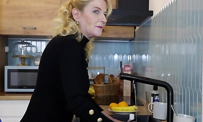 Blonde Milf Olga Cabaeva wanks in retro nylon lingerie high-heeled shoes