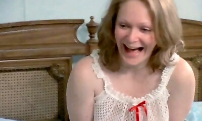 Large breasted sleepy vintage brunette gets waken up with missionary fuck