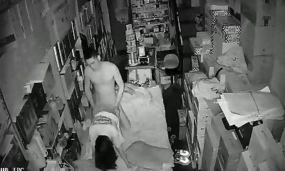 Camera monitoring candid pictures of convenient small shops, couple sex life in bed