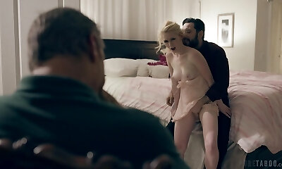 Father's huge black cock heads deep into her wet pussy and makes her scream